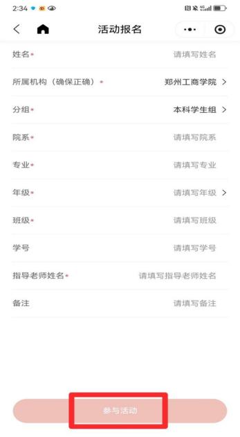 2. 按照活动界面要求,填写真实的报名信息,请准确选择所在学校。(如需改动,在“我的报名”处仅支持修改一次)
