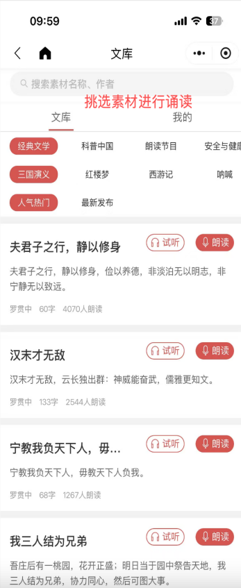文本选择:诵读文本应来自具有社会影响力的经典作品或官方出 版物;当代作品需已正式出版或由主流媒体发布。鼓励在诵读前后增 加总计不超过200字的个人感悟或背景介绍,体现“读书 ”与“ 思考 ”的结合。